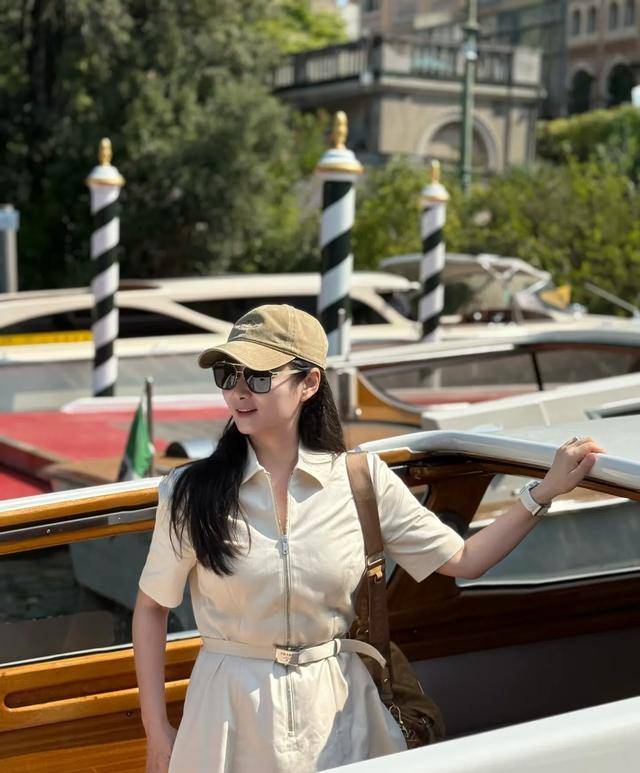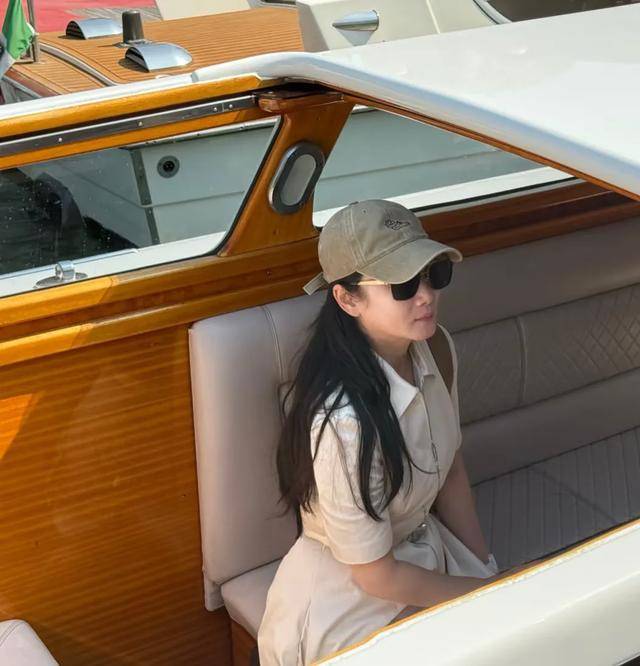 在游艇上,欣赏两岸风景时,也是一副超然物外的样子,真的好美,这是她近期造型中最美的一次,连网友都在称赞她这次造型出众。